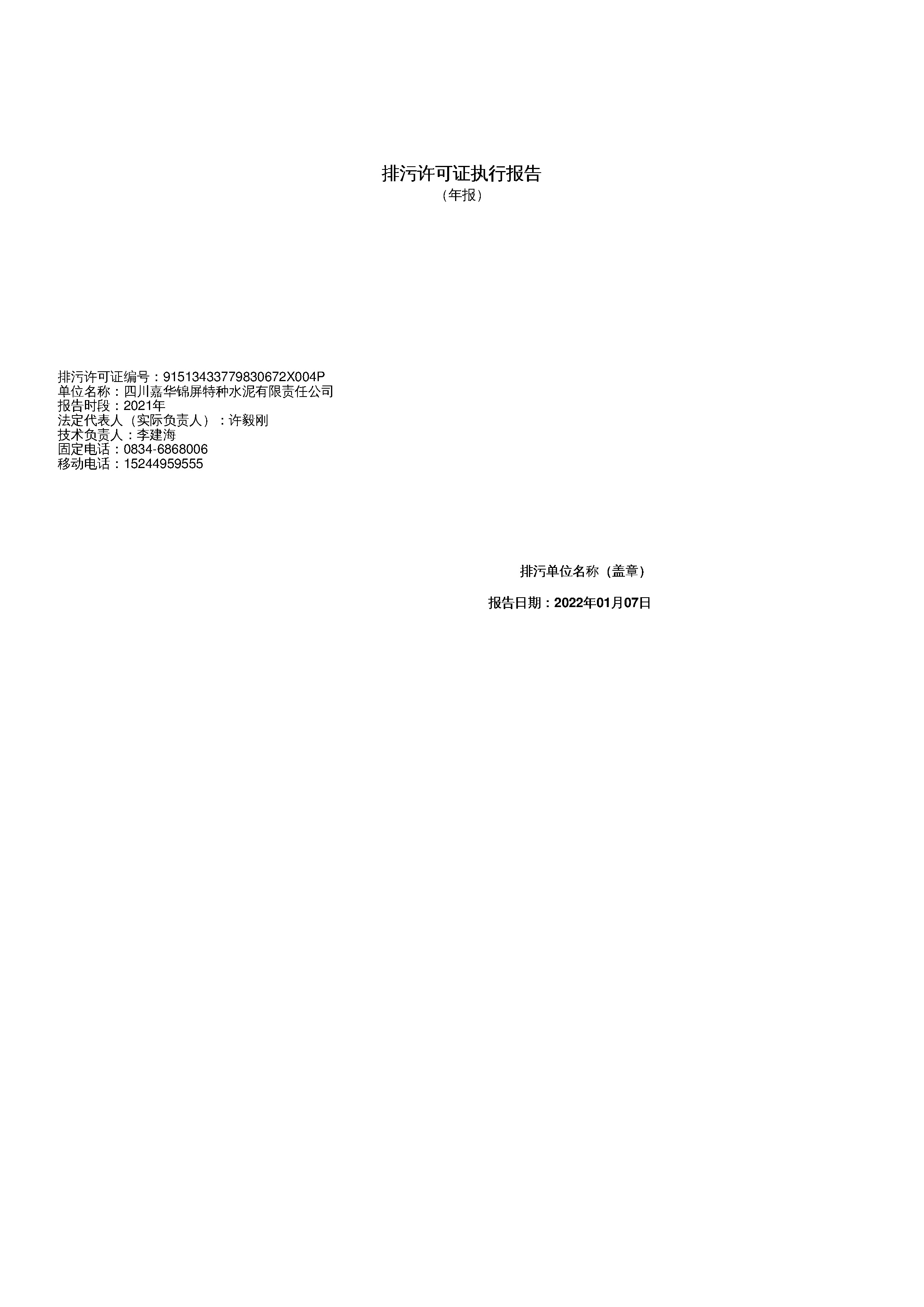 2021年度排污许可证执行报告